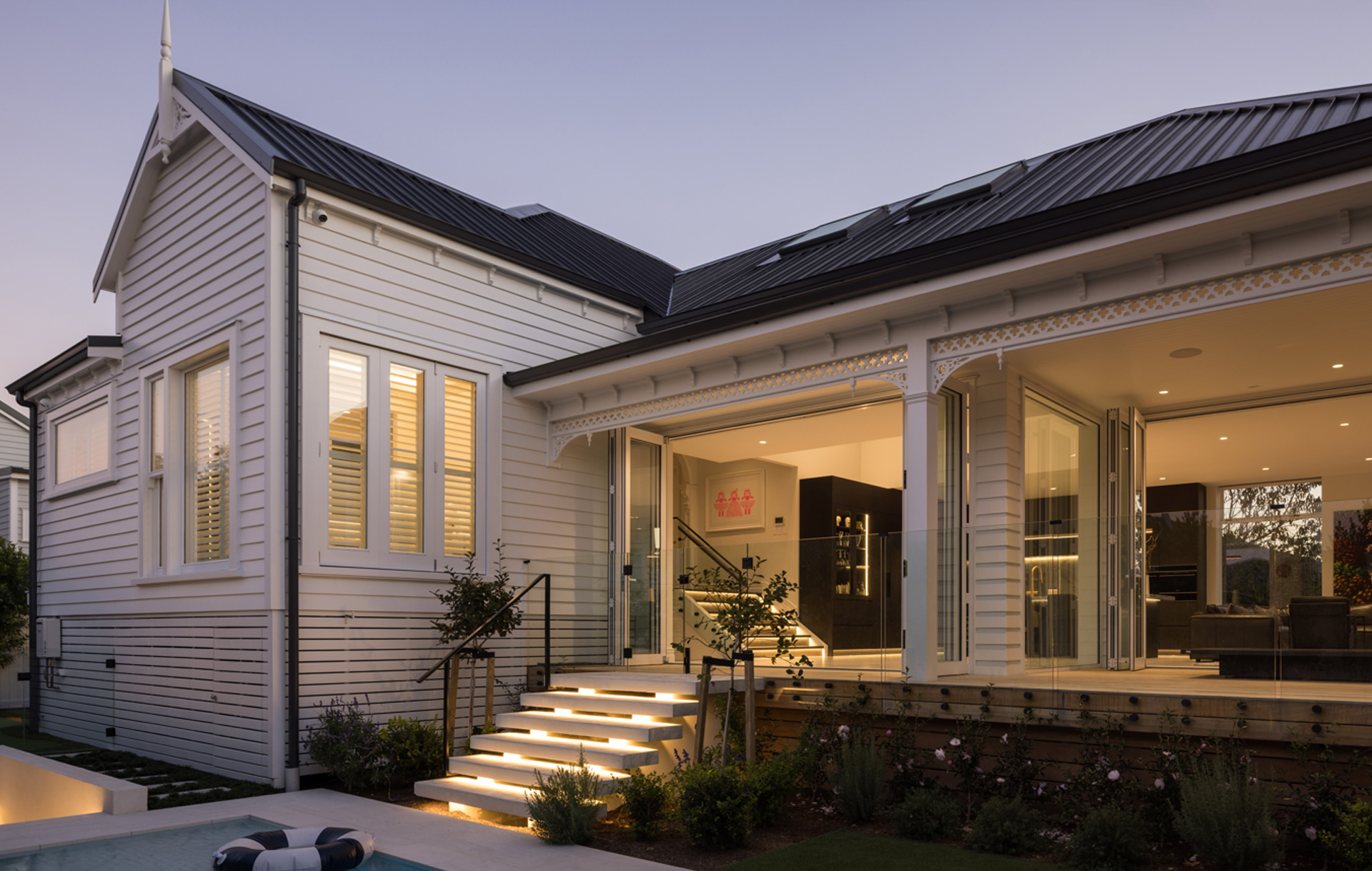 This relocated villa was thoughtfully rebuilt and extended to combine traditional New Zealand architecture with modern design.